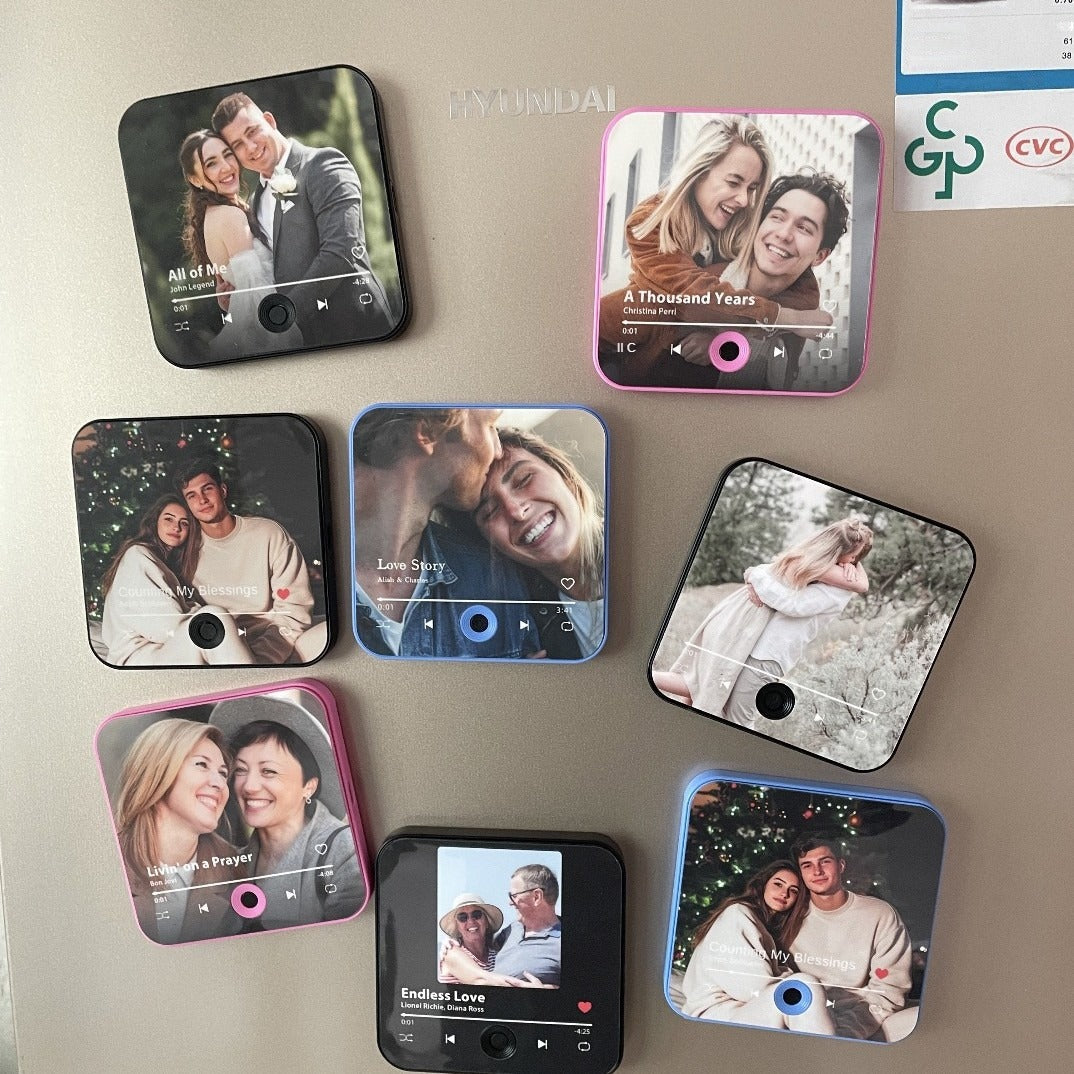 Product Description: II. Product Overview A patented creative gift supporting both photo/pattern customization and music playback functionality. III. Technical Specifications • Dimensions: 10×10×1cm (Product) / 11×11×2cm (Package) • Weight: 65g (Product) / 85g (Package incl. Type-C cable, manual & white box) • Materials: ABS upper/lower covers + PS transparent cover IV. Music Module Specifications 1. Standard Version: - 8MB memory storage - 200mAh lithium polymer battery (2-3h playtime, 2+ months standby) - Supports MP3 upload via Type-C (max 10min audio) - No volume control/microphone 2. Bluetooth Version: - Wireless connection via smartphone Bluetooth - Functions as Bluetooth speaker with volume control V. Customization Features 1. Visual Customization: - Full surface DIY design (excluding buttons) - Compatible with customer-provided photos/patterns - Optional DIY replacement kit available 2. Audio Customization: - Accepts MP3 files, song titles/artists, or music links - Customized songs vary per unit (batch/individual orders) VI. Operational Guidance 1. Music Replacement: - Standard version: Connect to computer via Type-C → Replace MP3 files - Bluetooth version: Direct streaming from phone 2. DIY Photo Replacement: - User-printed photos + computer connection for MP3 update VII. Logistics & Service - Standard packaging: OPP bag + white box - Production lead time: 3-5 days (custom orders) - Bulk order timelines: Customized per order volume - Shipping: Default via ZTO Express - Policy: Non-returnable for customized products VIII. Certification & Compliance - Contains lithium battery (certified safe for transportation) - Carton specifications: 100pcs/box, 45×30×25cm, 10kg Note: All technical parameters meet international safety standards for electronic gifts.